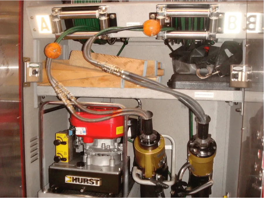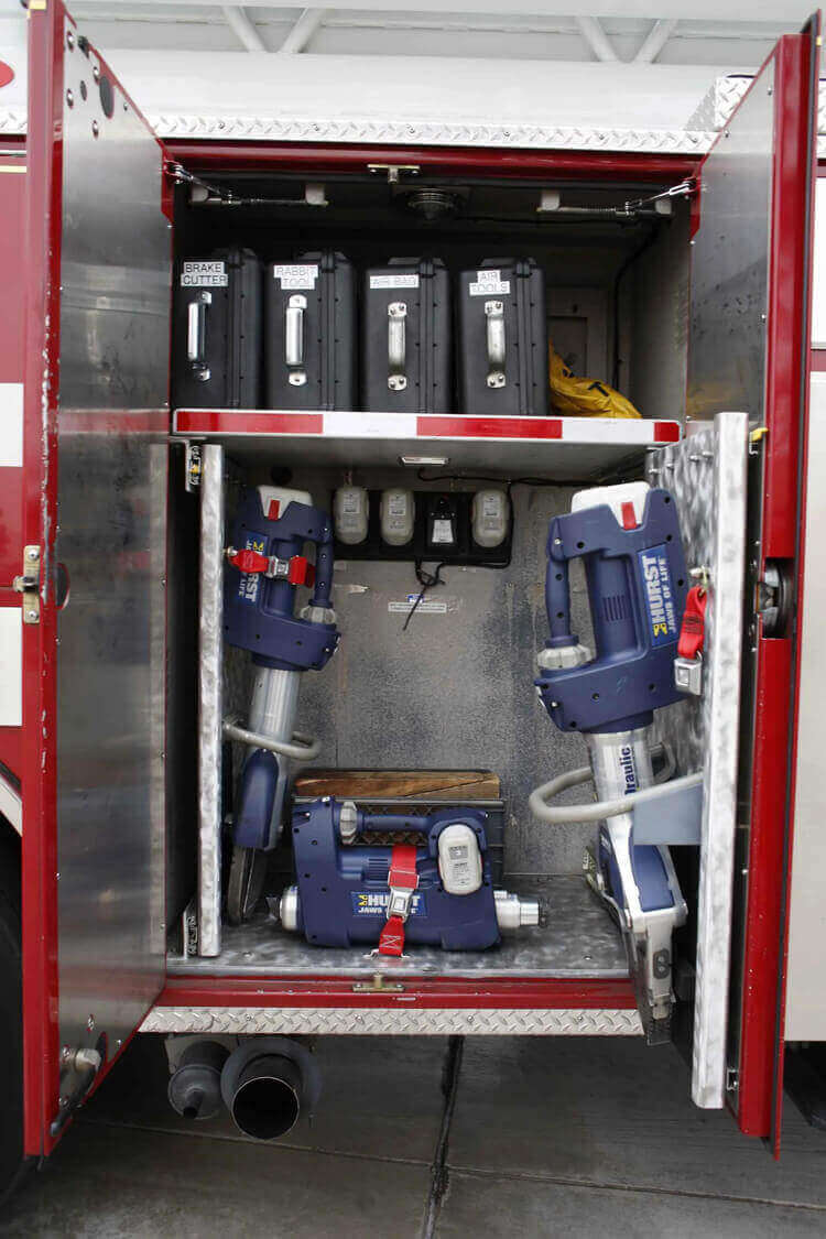 Firefighters have a number of tools that they may need at any given time including forcible entry tools and first-aid equipment. In this case, there was a compartment that carried electronic spreaders, cutters, and other auxiliary equipment.